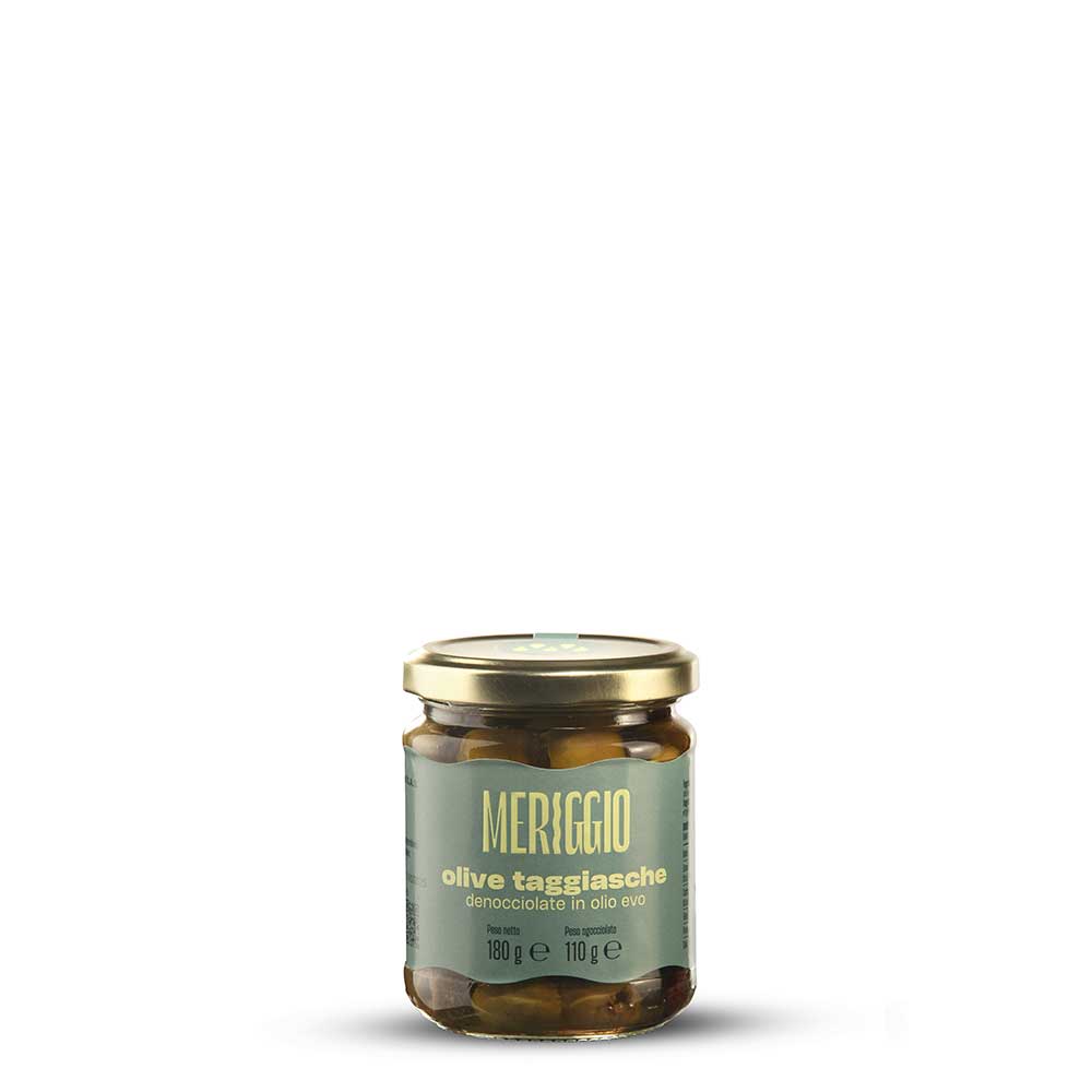 Czarne oliwki "Taggiasche" bez pestek 60%, oliwa z oliwek z pierwszego tłoczenia 40%, sól.
